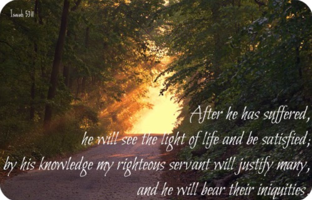 After he has suffered, he will see the light of life and be satisfied; by his knowledge, my righteous servant will justify many, and he will bear their iniquities.